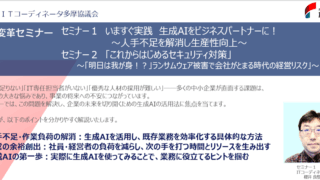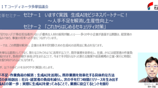 いますぐ実践 生成AIをビジネスパートナーに! ~人手不足を解消し生産性向上~「これからはじめるセキュリティ対策」 ~「明日は我が身!?」ランサムウェア被害で会社がとまる時代の経営リスク」~ 日時:2026年3月4日(...