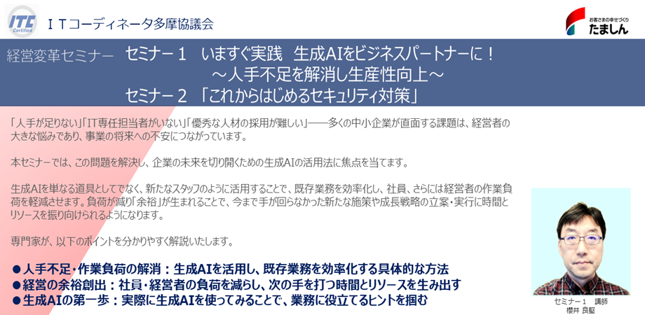 ITコーディネータ多摩協議会の専門家が具体的な事例を交えて解説いたします。