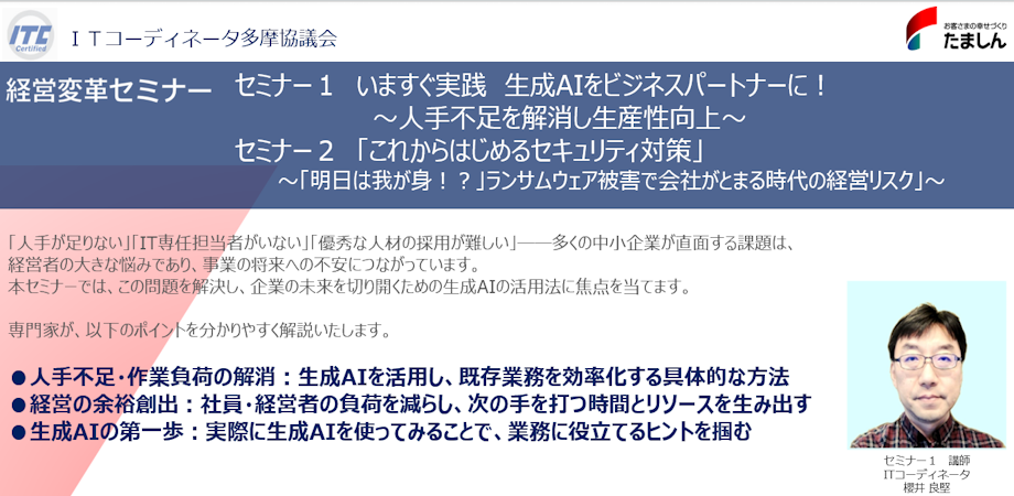■セミナー1 「生成AIをビジネスパートナーに!」 13:00~14:30